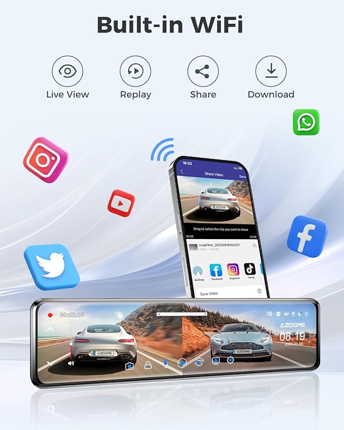 AZDOME PG19X Front and Rear 4K Mirror Dash Cam -