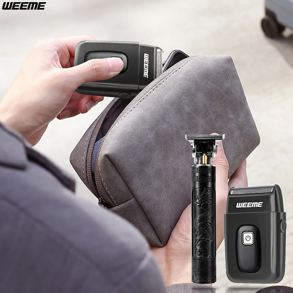 2pcs Men's Facial Hair Trimmer Kit, Electric Short Beard Shaver, Nose Ear Hair Trimmer for Grooming, Home Travel Use, Black Gold