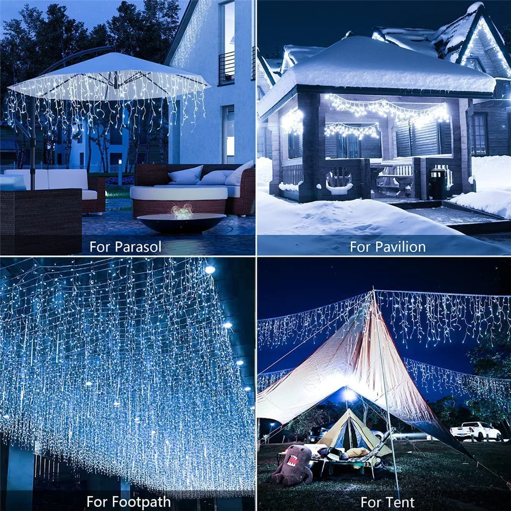 【Best Indoor & Outdoor Decoration】Waterproof(IP65) icicle lights are perfect for indoor and outdoor Decorations, Great lights in Christmas,Thanksgiving,Easter,Halloween,Valentine's Day, wedding and party. Can be used for home,restaurant, hotel, commercial building,shopping mall etc.