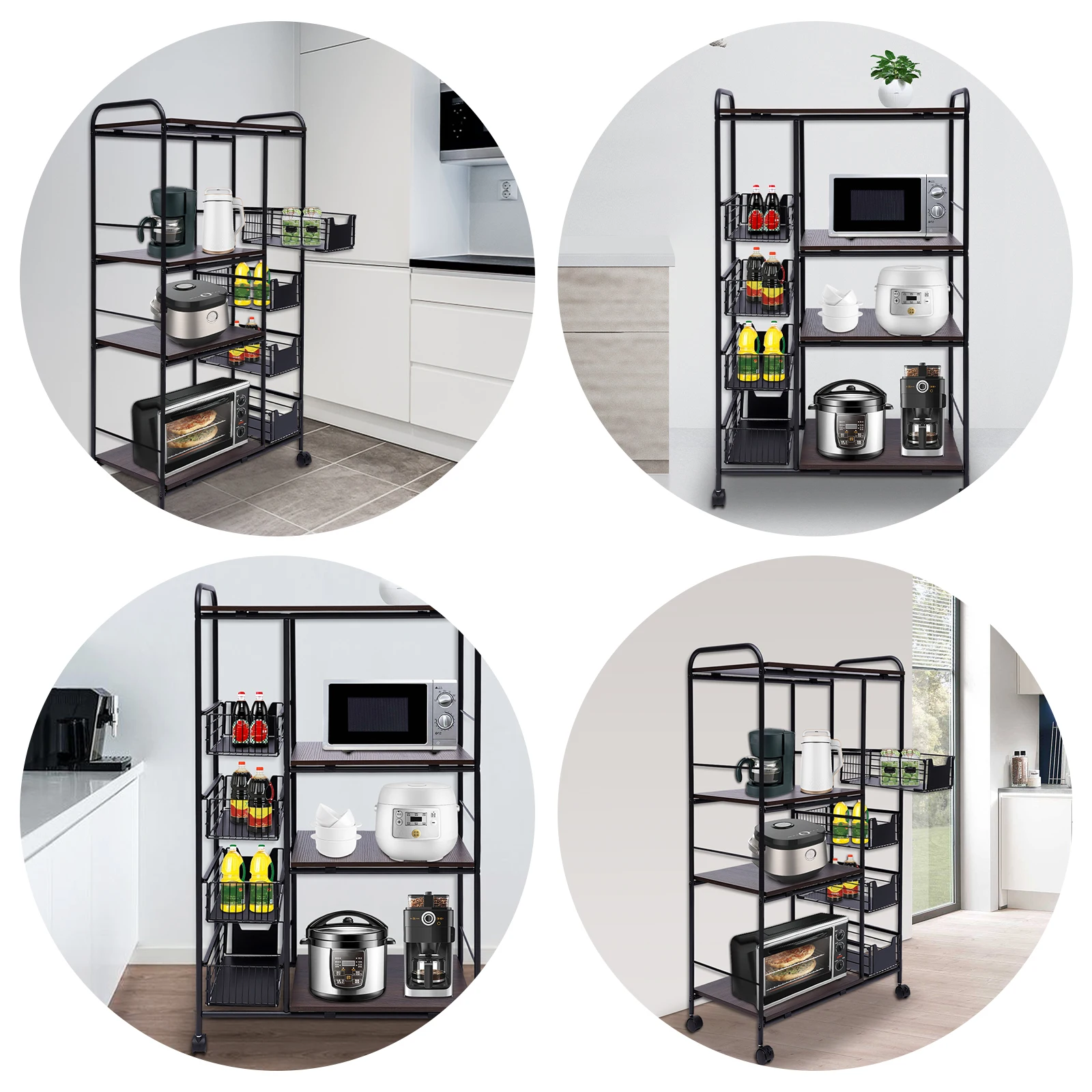 [Sufficient storage space]: Due to the design of 4 floors + 5 floors, the kitchen baker's shelf provides a huge storage space. Please ensure that there is enough space for tableware, it can hold your microwave oven, coffee maker or other Kitchenware.