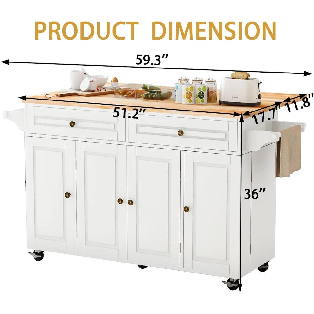 Kitchen Island Cart with Storage on Wheels, 59" Large Rolling Kitchen Island with Drop Leaf, Mobile Island for Kitchen with Towe