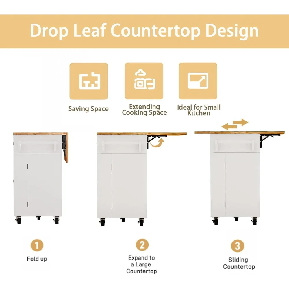 • Versatile Drop Leaf Countertop: The kitchen island with drop leaf features a durable, eco-friendly wood countertop. Resists stains and water, making it great for food prep, serving, or displaying items. Expand it when more space is needed or fold it down to save space. This versatile surface makes the island a must-have in any home
