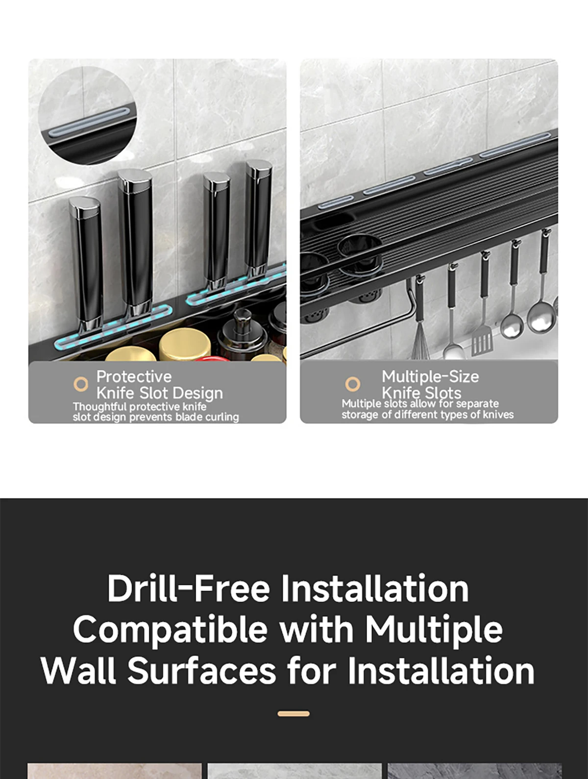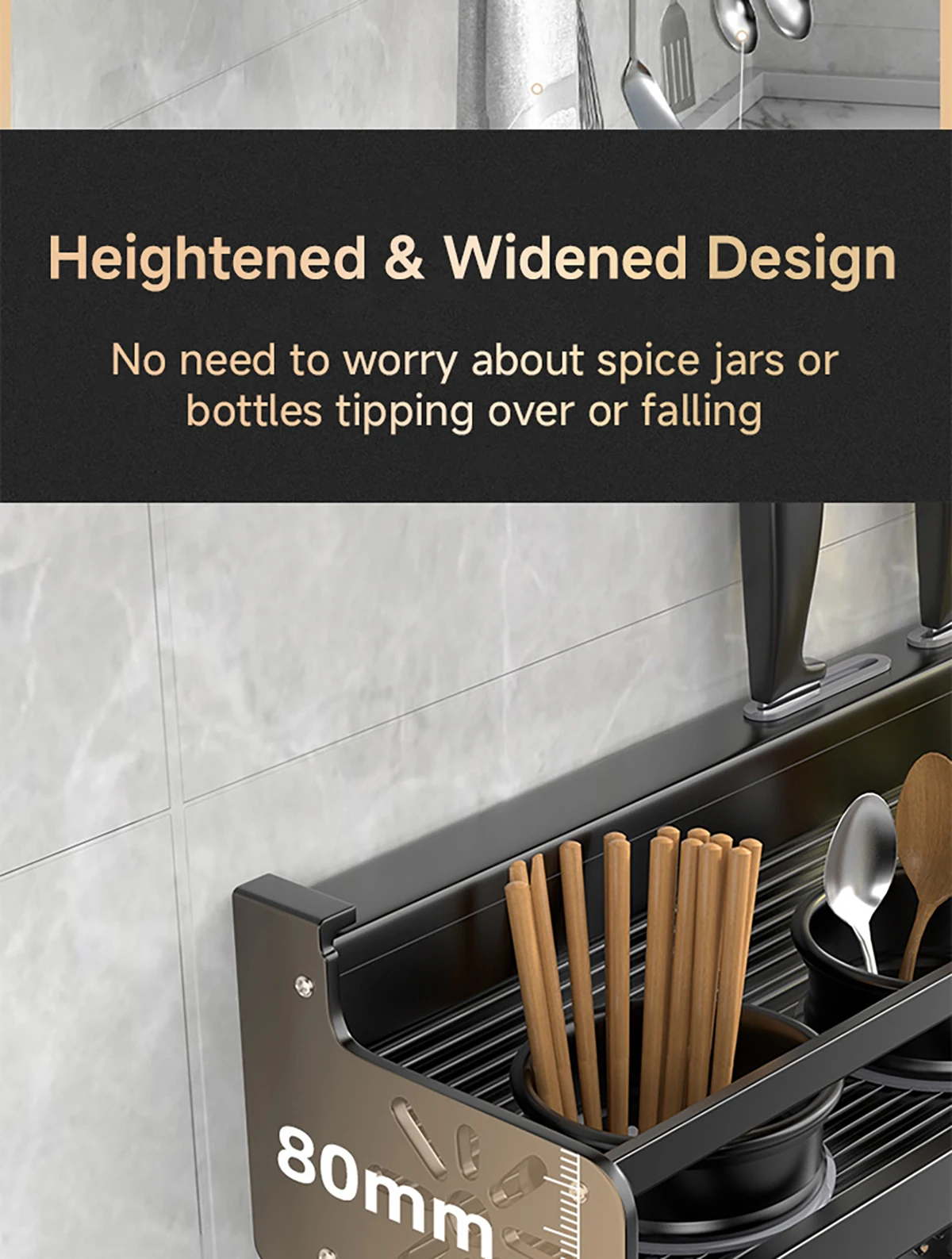 Application: Suitable for kitchen, used for storing knives, chopsticks, spoons, spatulas, spice jars, cutting boards and other kitchen utensils and items.