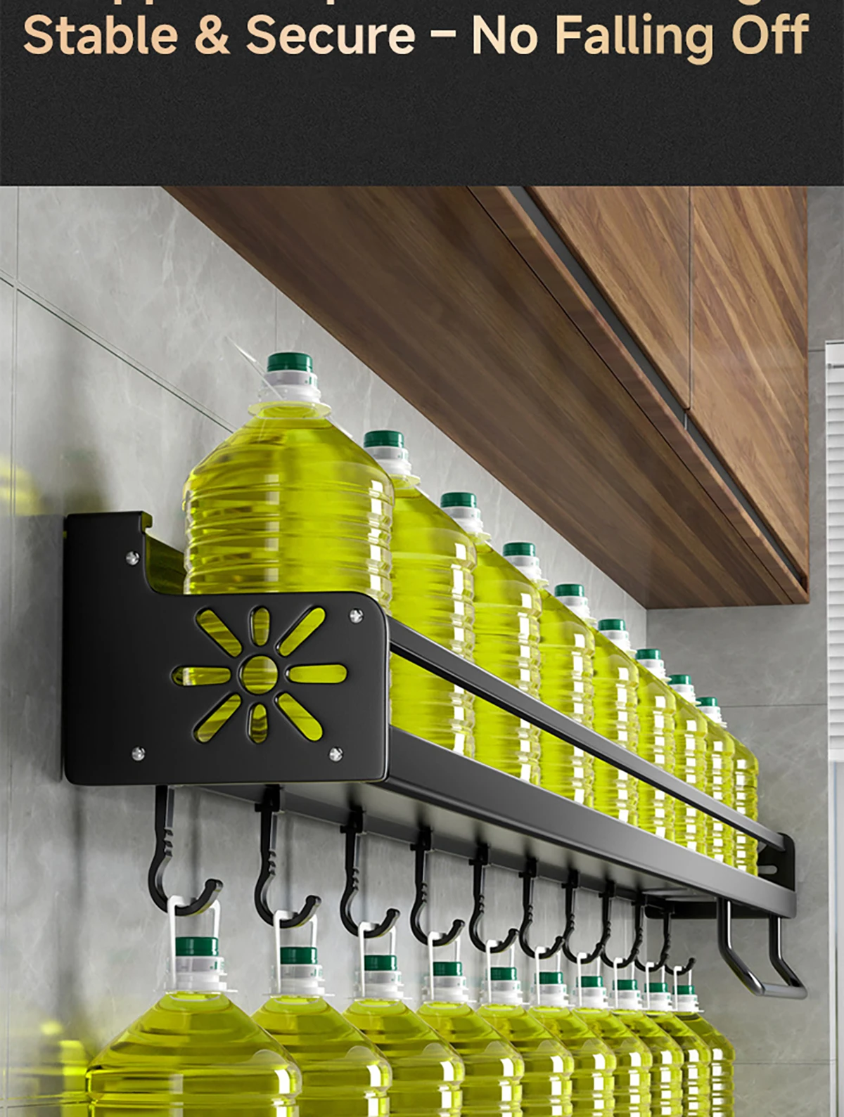 Features: hole-free installation; large capacity, can store a variety of kitchen supplies; multi-layer reinforcement rust; removable, easy to clean; hollow ventilated design, effective draining oil; easy to use, you can access the kitchen utensils at any time.