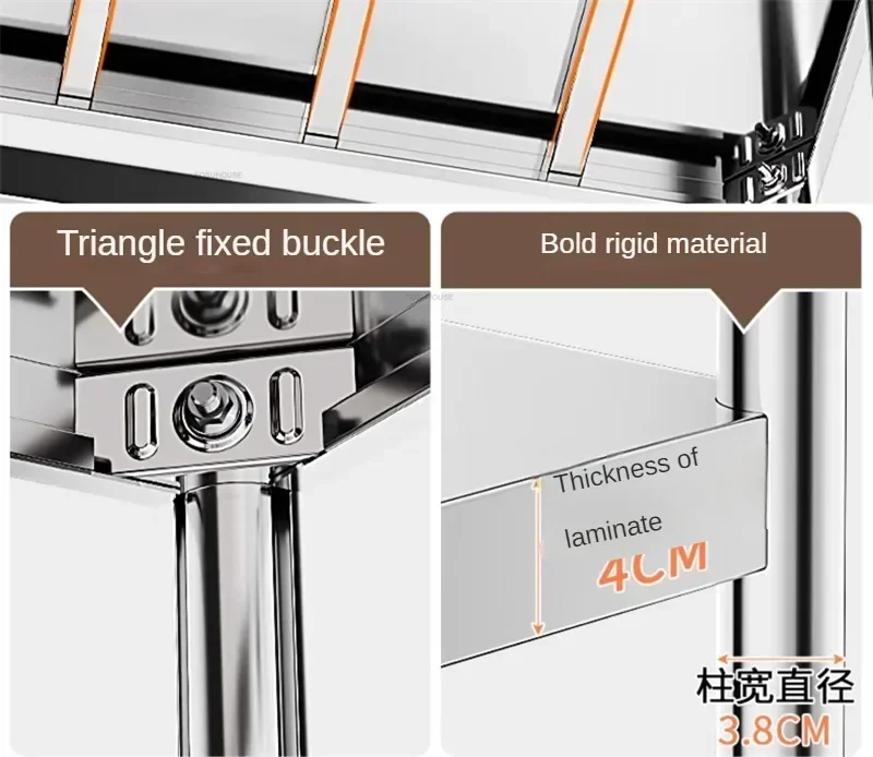 Multifunctional Stainless Steel Kitchen Cabinets with Door Floor Multi-layer Storage Racks Sliding Door Cabinet Home Furniture
